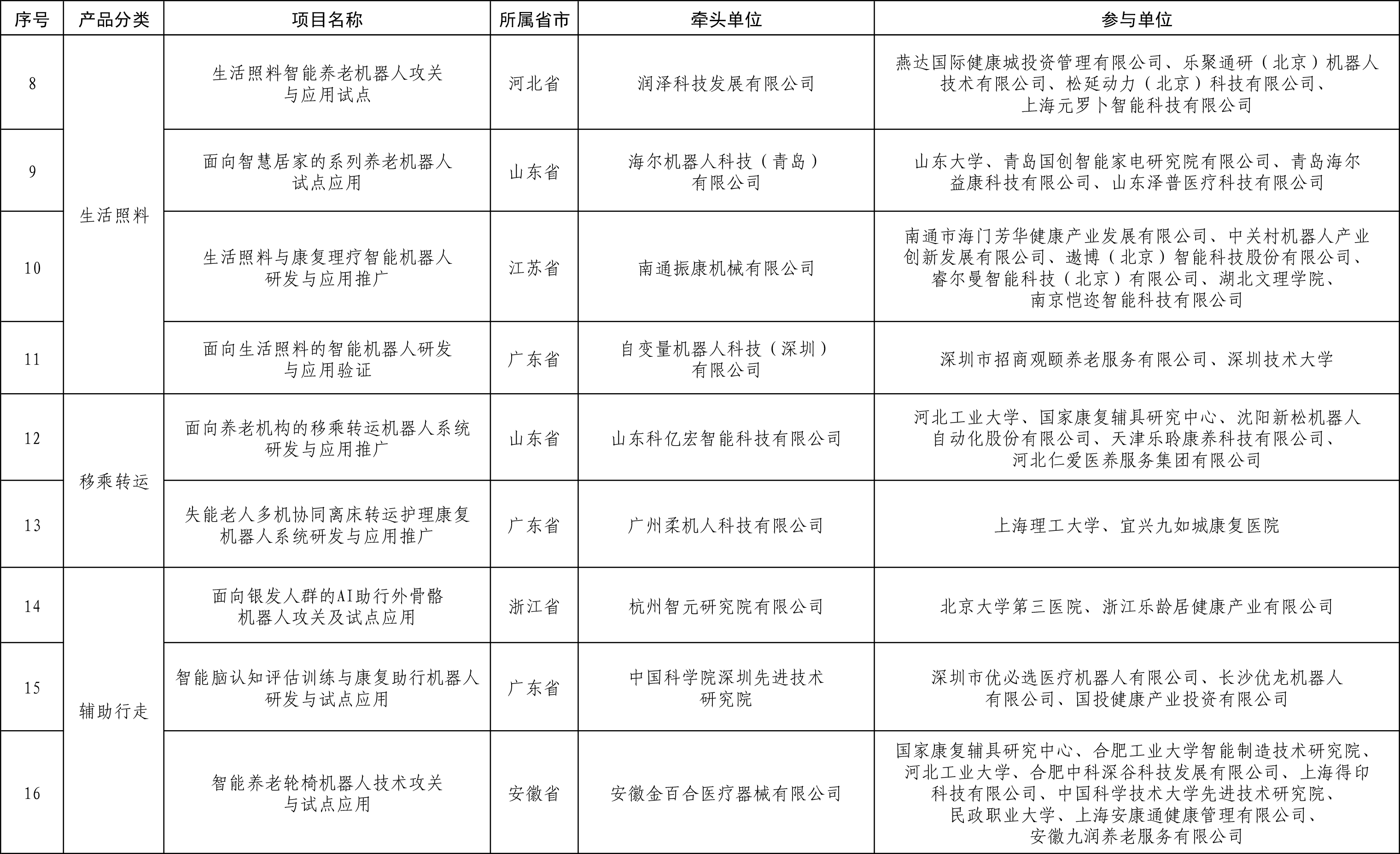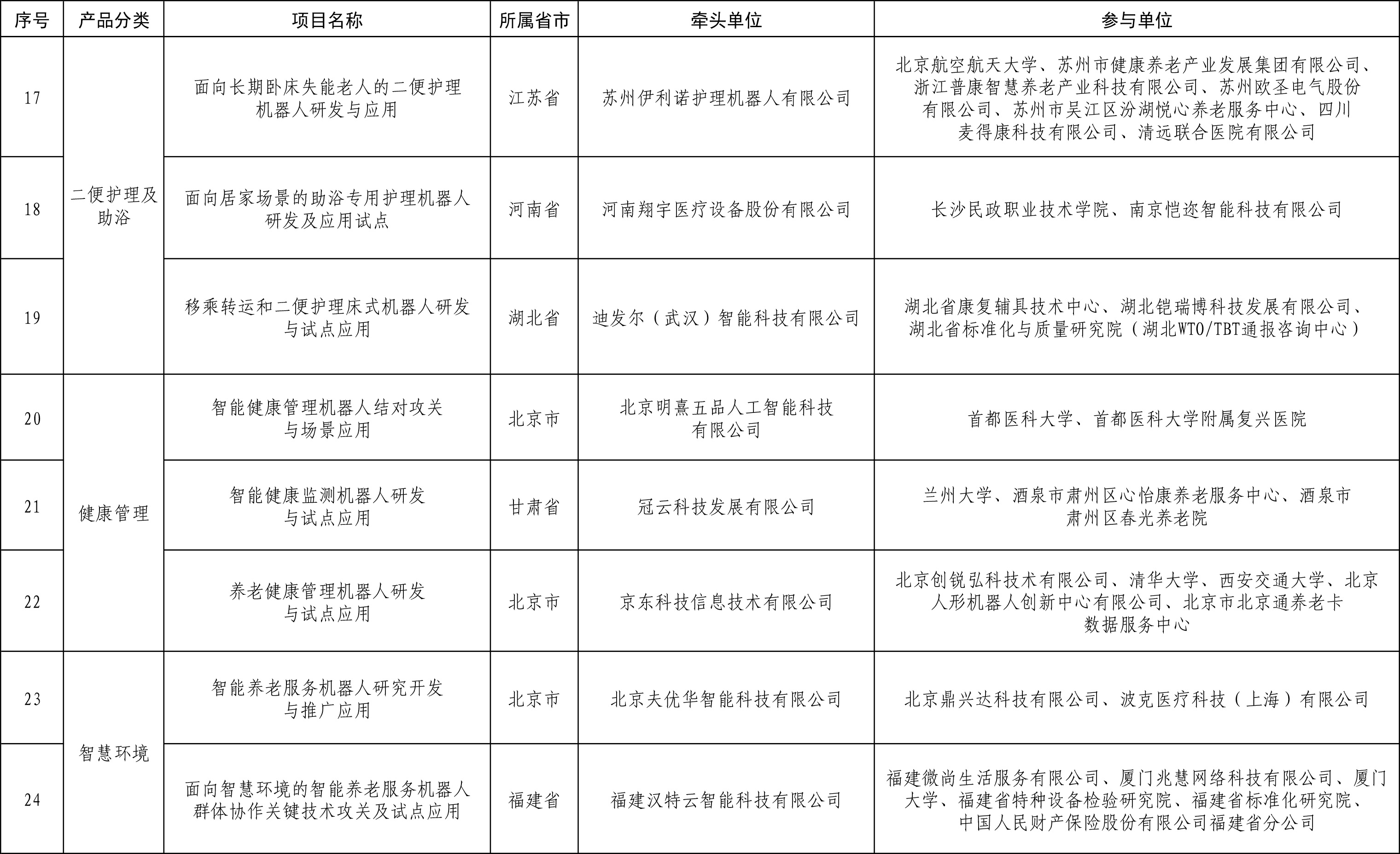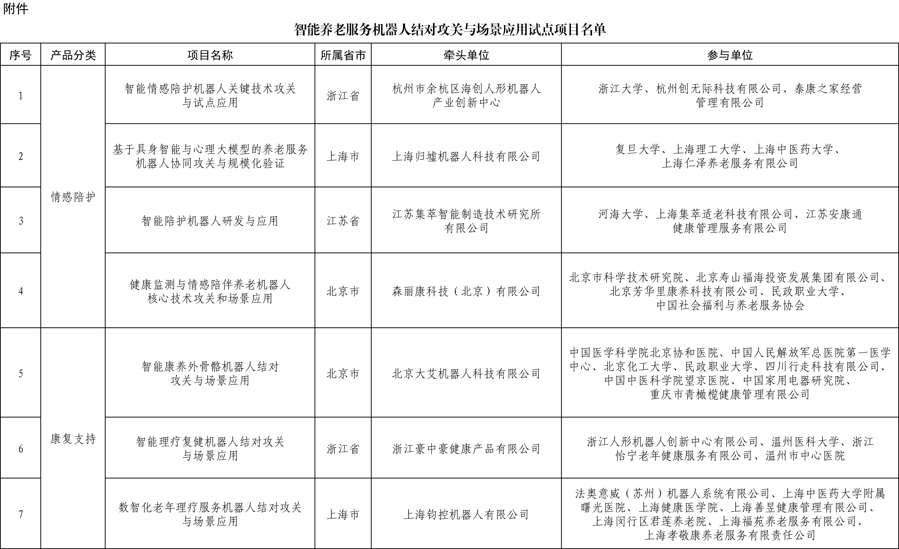 关于公布智能养老服务机器人结对攻关与场景应用试点项目名单的通知